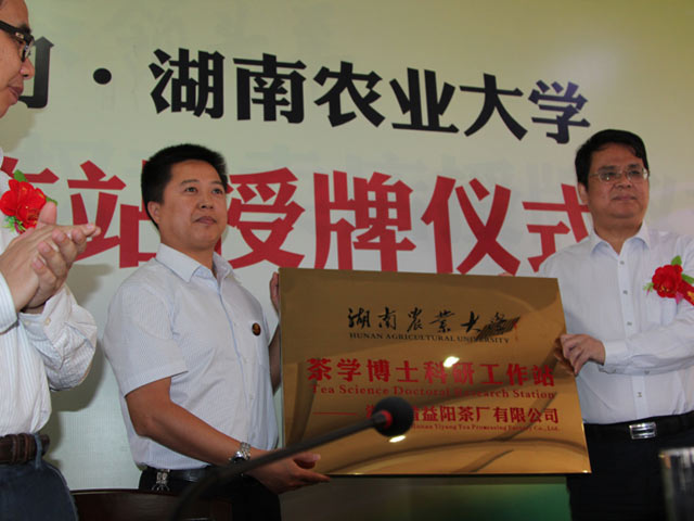 2015年10月22日,湖南農業(yè)大學(xué)茶學(xué)博士科研工作站授牌儀式在湖南省益陽(yáng)茶廠(chǎng)有限公司隆重舉行。
