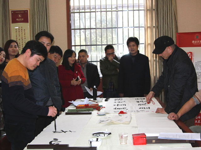 2015年12月8日下午,益陽(yáng)市總工會(huì )黨組書(shū)記、副主席郭谷軒,市總工會(huì )副主席、市書(shū)法家協(xié)會(huì )副主席唐新華,市書(shū)法家協(xié)會(huì )常務(wù)副主席、秘書(shū)長(cháng)石印文組織市書(shū)法名家蒞臨益陽(yáng)茶廠(chǎng)有限公司舉行以“翰墨茶香”為主題的筆會(huì )活動(dòng)。