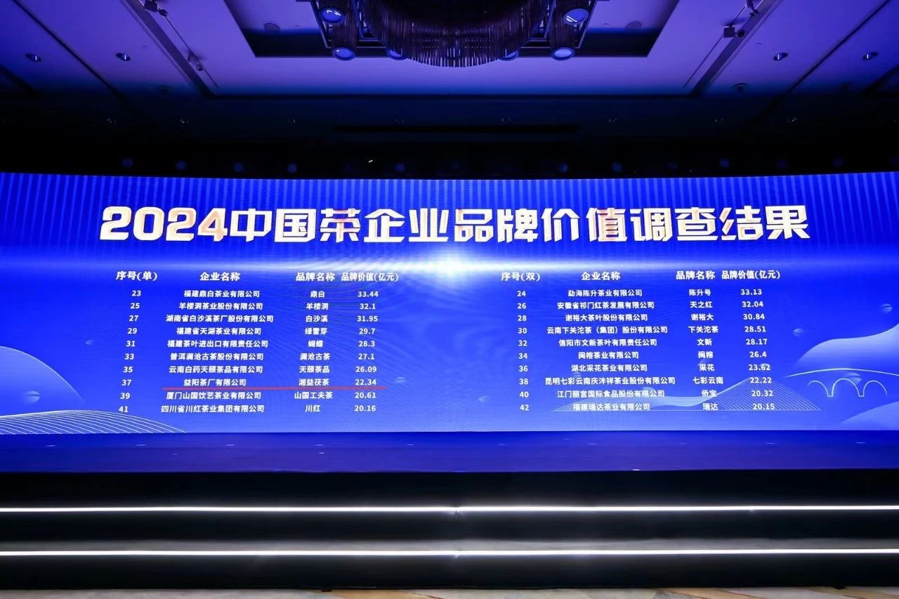 5月10日,由新華社品牌工作辦公室、中國經(jīng)濟信息社、中國茶葉流通協(xié)會(huì )、新華社上海分社、經(jīng)濟參考報主辦的2024中國茶品牌建設論壇在上海成功舉辦。論壇上正式發(fā)布了“2024中國茶品牌(區域公用品牌、企業(yè)品牌)TOP50”系列調查成果。湘益茯茶榮登“2024中國茶企業(yè)品牌價(jià)值TOP50”榜單。